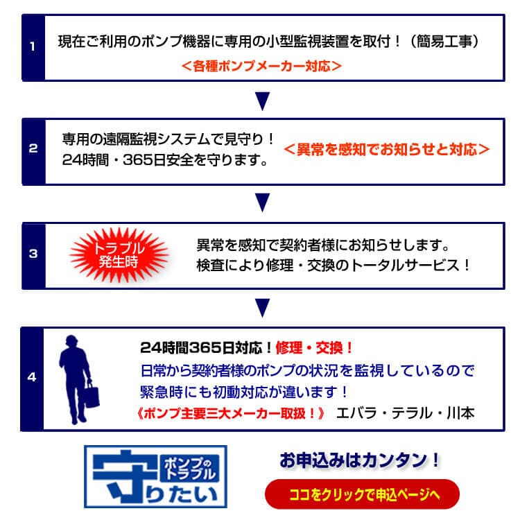 | 事業内容 | 給排水ポンプ/受水槽の修理・交換・点検、受水槽清掃、屋上防水、塗装工事、消防点検 等、マンション共用部分の設備工事・点検の各種サービス